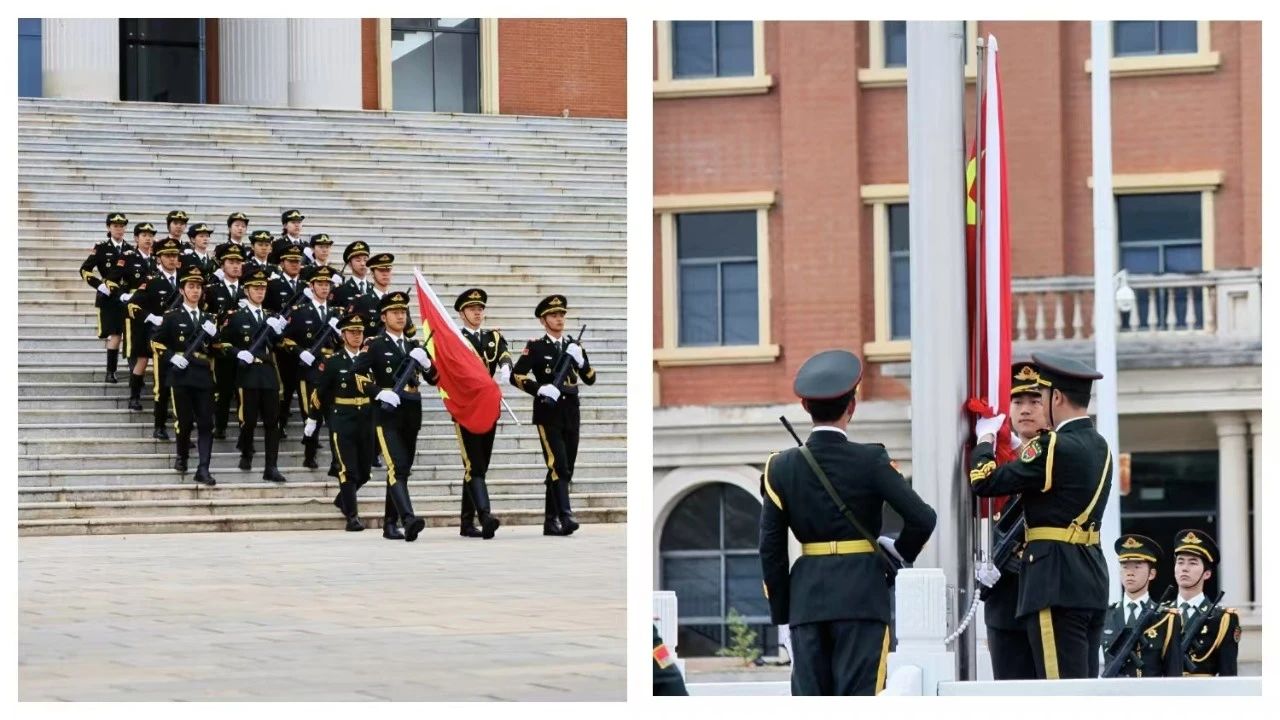 广场上,红旗飘扬,师生瞩目。国旗护卫队踏着坚定的步伐,从广场的一端向升旗台踏步前行。他们身着笔挺的军装,肩负着神圣的使命,目光坚定,步伐铿锵,每一步都仿佛与大地共鸣。